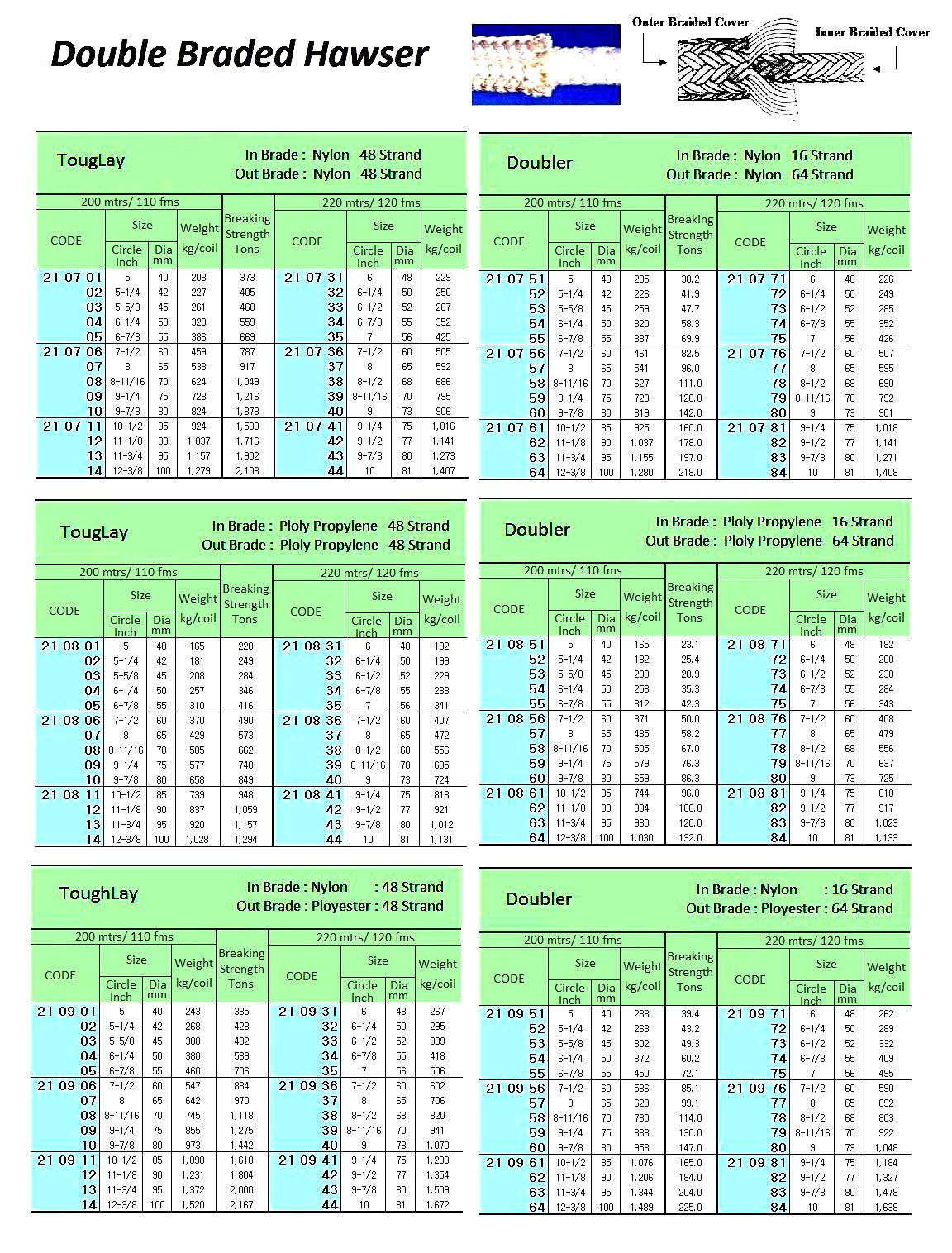 DOUBLE-BRAIDED HAWSER, NYLON, 5-5/8″CIR ( D= 45 MM )x 220 M – C/L
