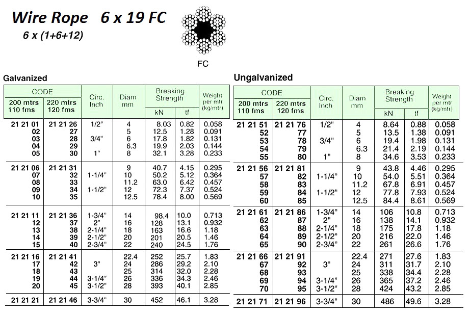 WIRE ROPE, GALV. 6×19 FC, 12.5 MM DIA x 200 M W/CERT. – C/L