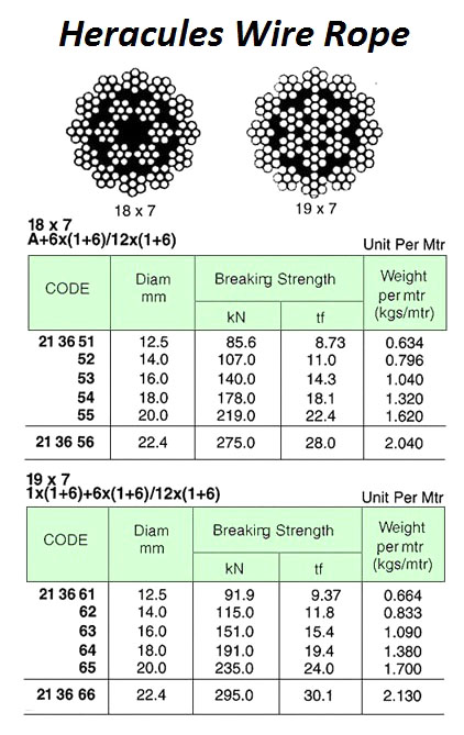 WIRE ROPE, NON-ROTATING, HERCULES, 19×7, GAL, 14.0 MM – MTR