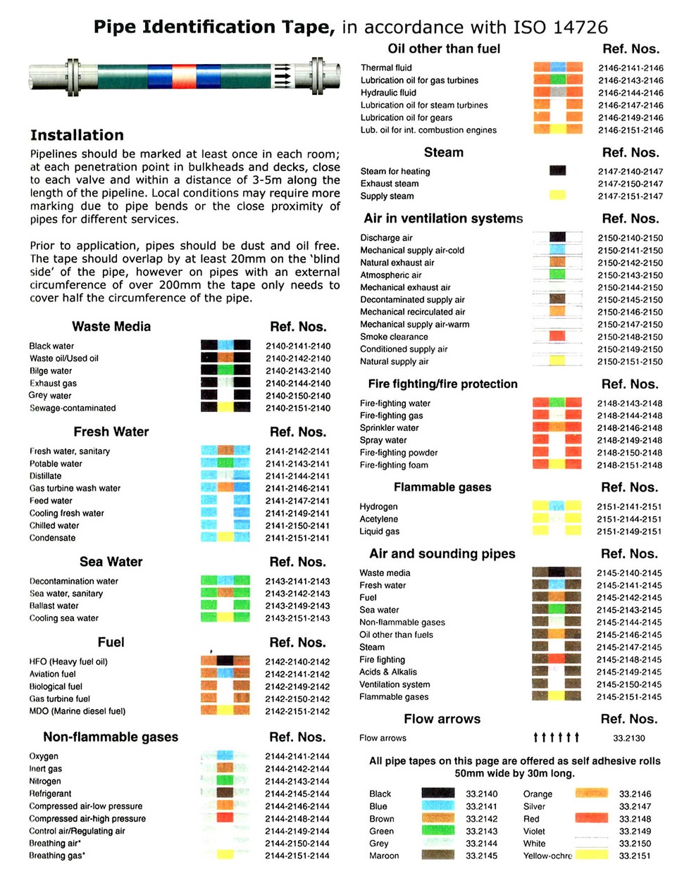 PIPE IDENTIFICATION TAPE, 50 MM x 30 MTR, AUXILIARY BLUE – ROL