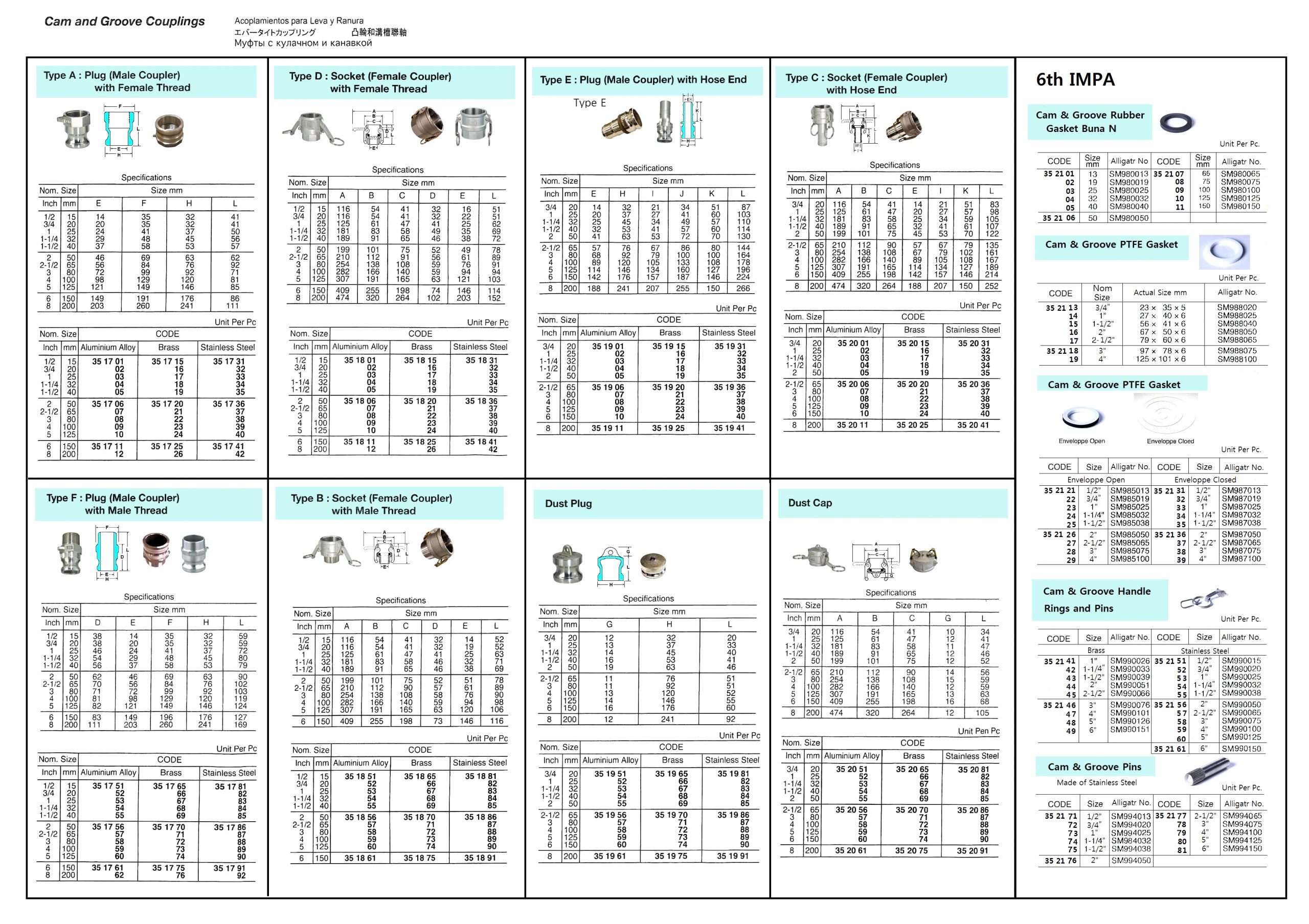 CAM & GROOVE COUPLING, E TY PLUG (MALE COUPLER) WITH HOSE END, ALUMINIUM, 6′ – PC
