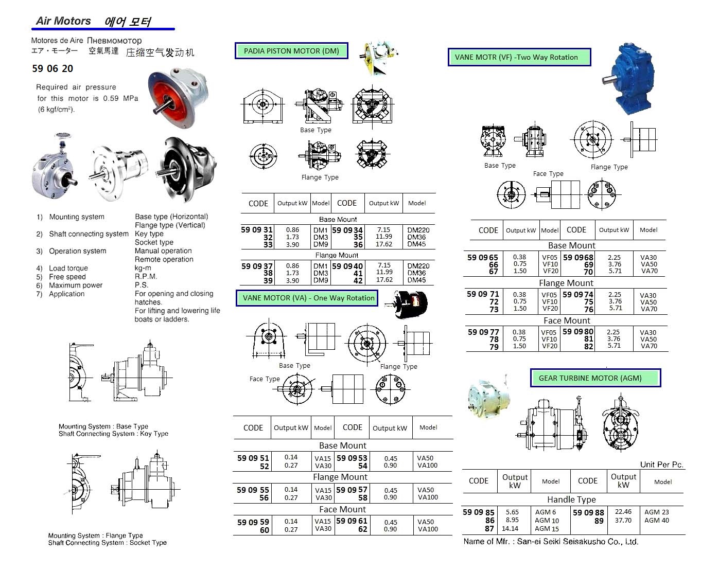 AIR MOTOR, BASE MOUNT, 1.73 KW, DM3, SANEI SEIKI, – SET