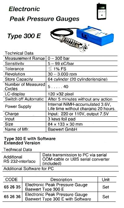 ELECT. PEAK PRESSURE GAUGE, 300E – SET
