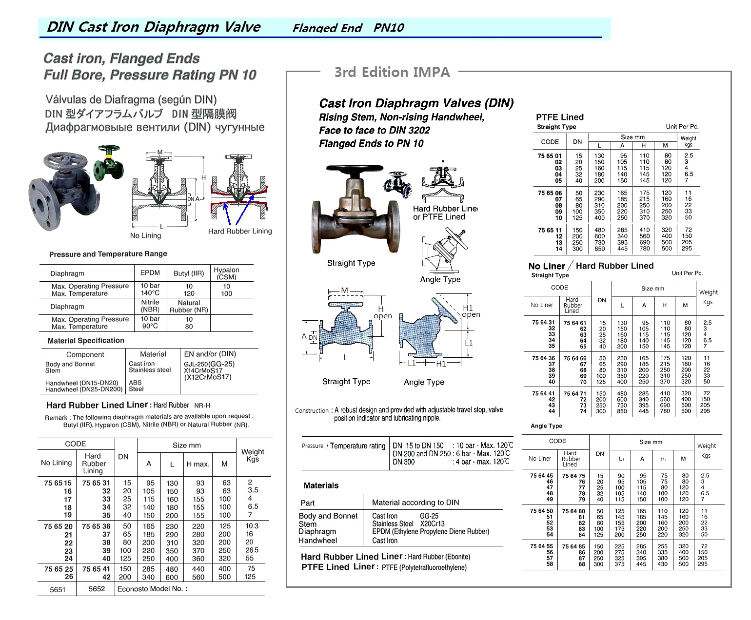 DIAPHRAGM VALVE (DIN), CAST IRON, FLANGED END, HARD RUBBER LINING, ECONOSTO NO:5652, DN 50 – PC