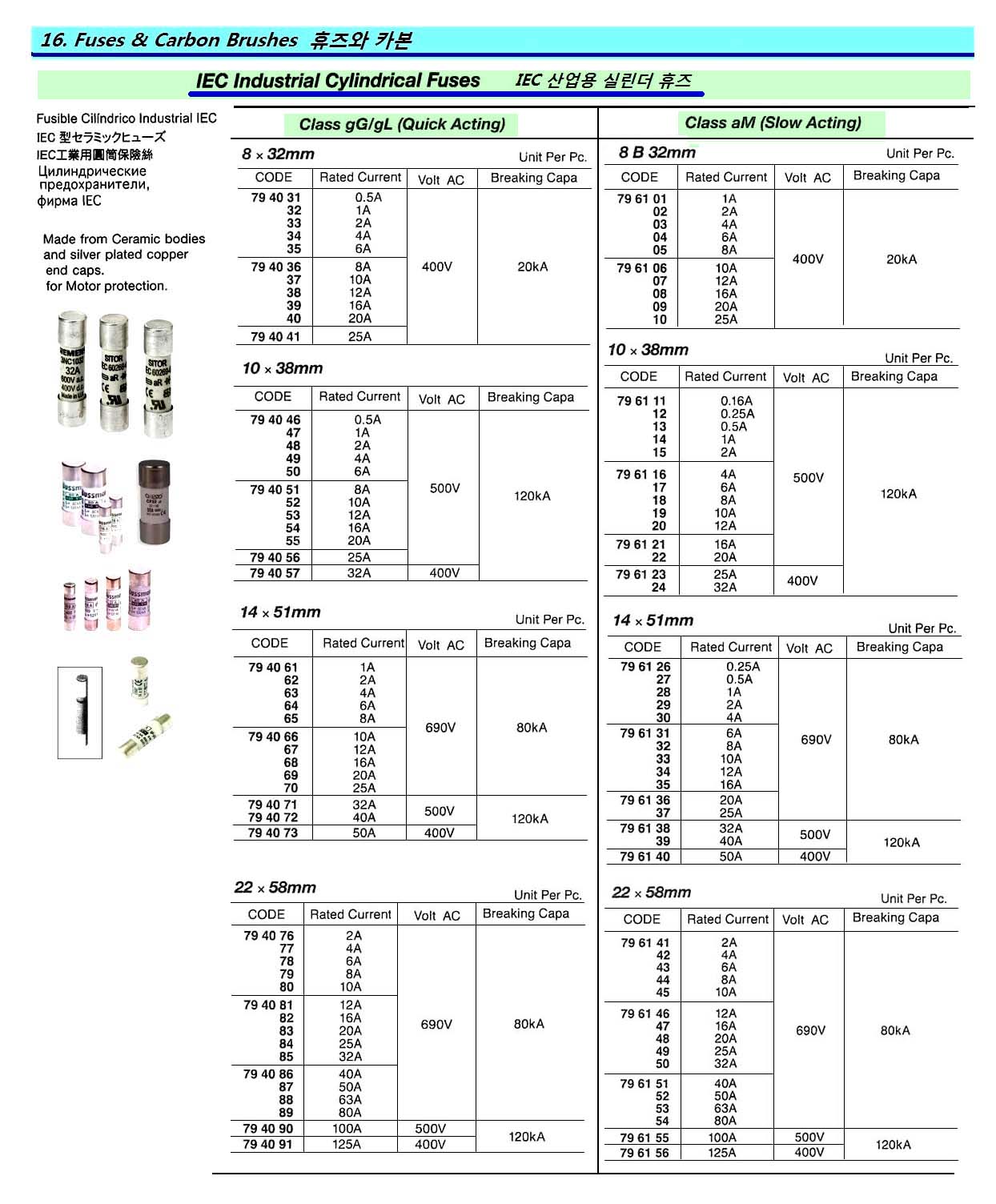 IEC INDUSTRIAL CYLINDERICAL FUSE, CLASS Gg/gL, QUICL ACTING, 22×58 MM, 690V, 16 A – PC